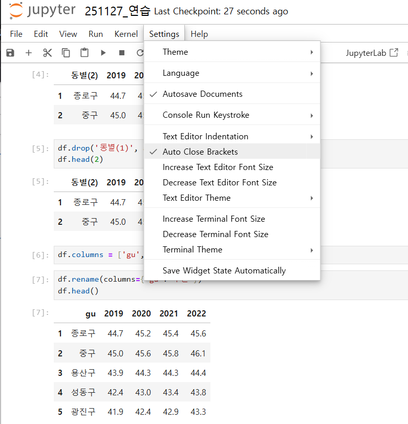 Jupyter Notebook 괄호 자동완성 설정하기 1. 문제상황 (), [], ‘’, “” 등 자동완성 설정하고 싶을 때 2. 해결방법 Python Version 7.3.2 Settings -> Auto Close Brackets (끝) Twitter Facebook LinkedIn Previous Next